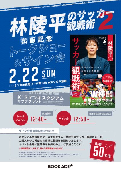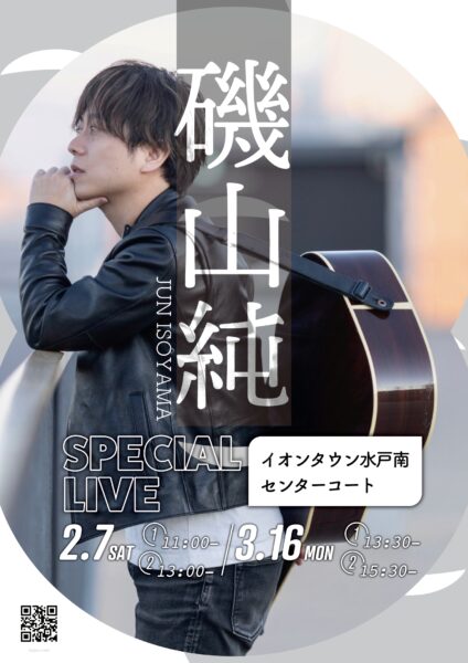 EVENT イベント情報 2026.2.6 【イオンタウン水戸南】磯山純さんスペシャルライブ開催! 詳細へ 2026.2.6 水戸ホーリーホック応援企画!明治安田J1百年構想リーグ ホーリーブック大作戦! 詳細へ 2026.2.2 子どもたちが本屋をプロデュース!?「こども書店プロデュース」2025年2月よりブックエースにて開催! 詳細へ 2025.12.8 【イオンタウン水戸南】磯山 純さんスペシャルライブ開催! 詳細へ